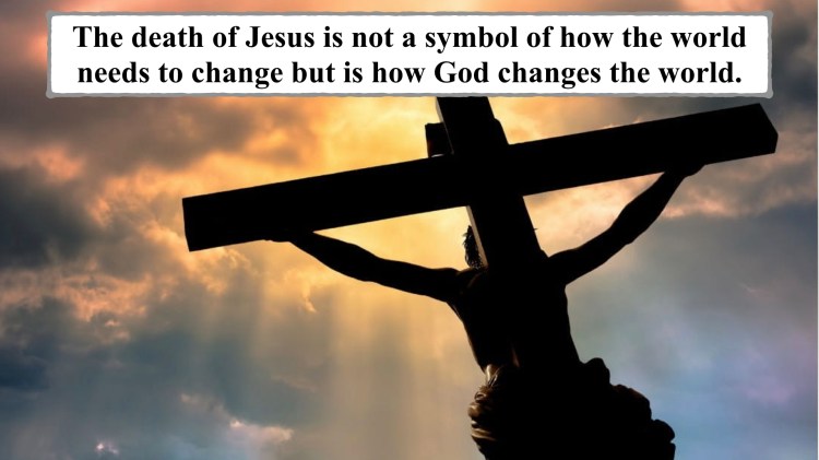 Secondly, do you recognize that the historical death of Jesus is about God bringing change into this world? The cross of Christ does not symbolize a change that needs to happen but is in itself a bringer of change. This is why Peter can preach a message of repentance and belief rather than a message of revolt, riot and protest. The historical death of Jesus (Included in this phrase is Jesus’ birth, life, death, resurrection and ascension) brought a change into this world by God. Our condition is changed by what God has done. The change that we need does not come from us, but is brought to us through the work of God in Jesus Christ. This is so foundational to everything. Going back to Galatians 3:1, notice what Paul does not say.