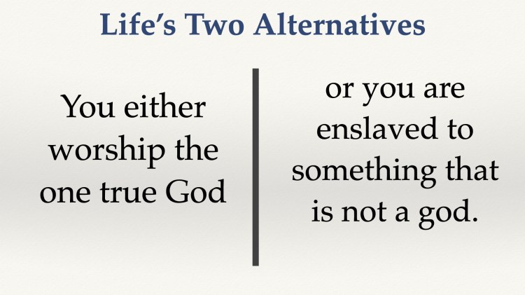 There are only two alternatives in life for all people, you either worship the true God, or you are enslaved to the worthless elementary principles of this world. You either worship the true God, or you are enslaved to something that is not a god.