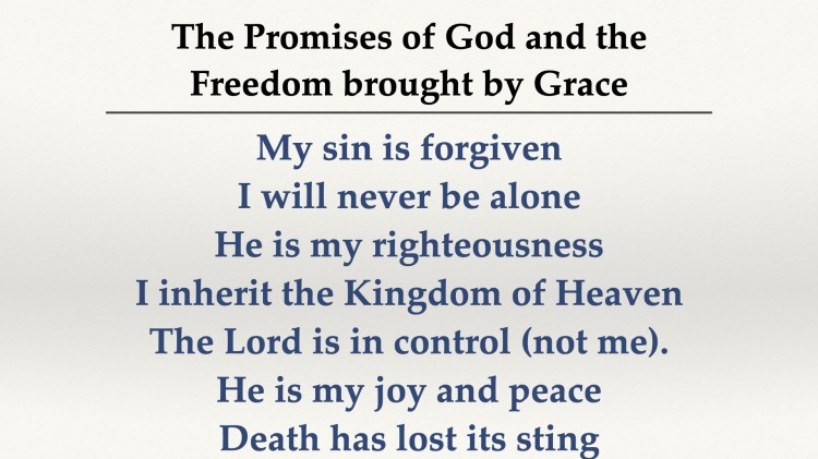 These are just some of the promises that God has made to you. Living in these promises as gifts of grace provides a freedom that this world cannot give. Live in that freedom. Amen.